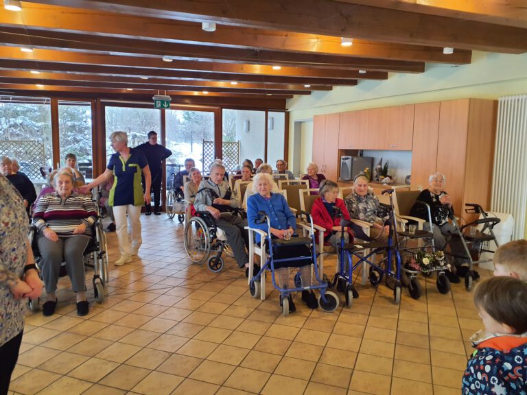 Nachdem die Kinder zunächst noch etwas schüchtern ihre Mützen und Handschuhe abgelegt hatten, wurden sie liebevoll ermutigt, denn die Bewohnerinnen und Bewohner genießen solche Besuche als willkommene Abwechslung zu ihrem ruhigen Alltag sehr.