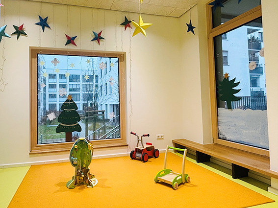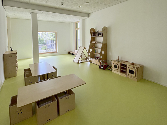 - erhalten Impulse durch anregungsreiche Räume und vielfältige Materialien