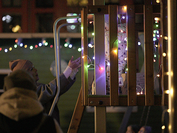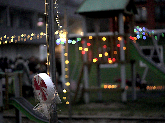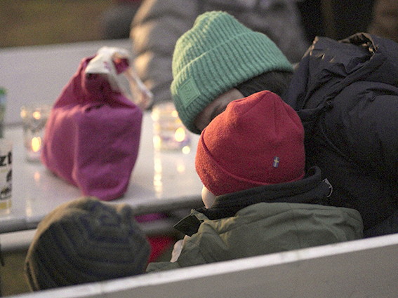 Um 16 Uhr eröffnete ein gemeinsames Weihnachtssingen das Fest. Eltern, Kinder und Erzieherinnen und Erzieher standen eng beisammen, und während die Lieder erklangen, mischte sich die Wärme der Stimmen mit der Kälte des frühen Abends.