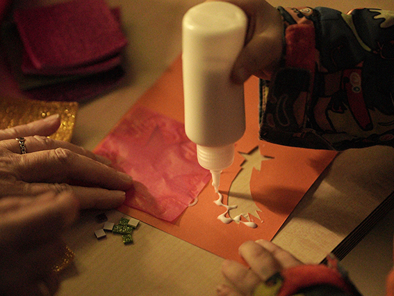 Dann begann das bunte Treiben: Kleine Hände tauchten in Glitzer, Farben und duftendes Zuckergusschaos, um Weihnachtskarten zu gestalten und Lebkuchen zu verzieren. Jedes Werk ein kleines Kunststück, jedes Lachen ein Funken Freude, der in den Himmel stieg.